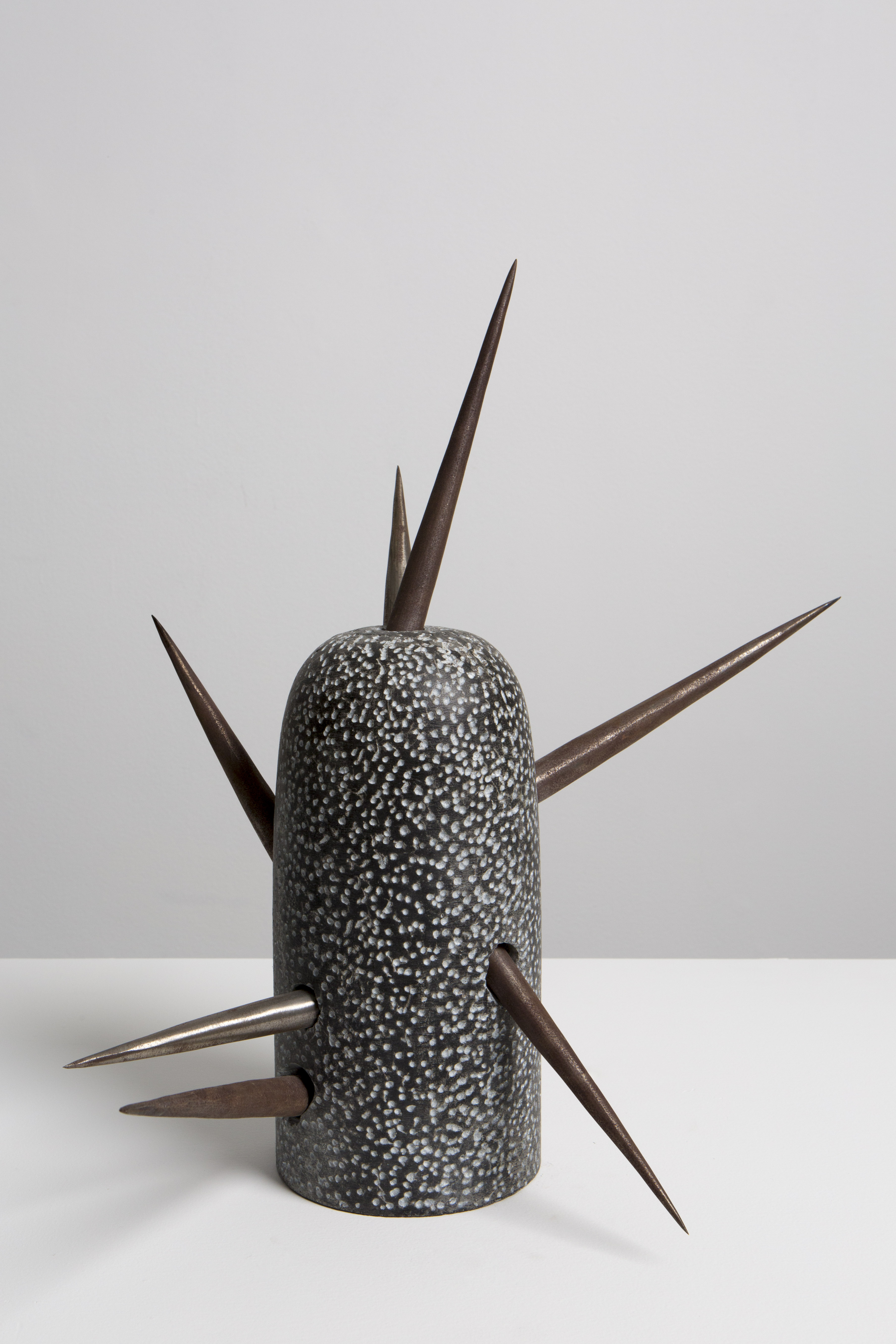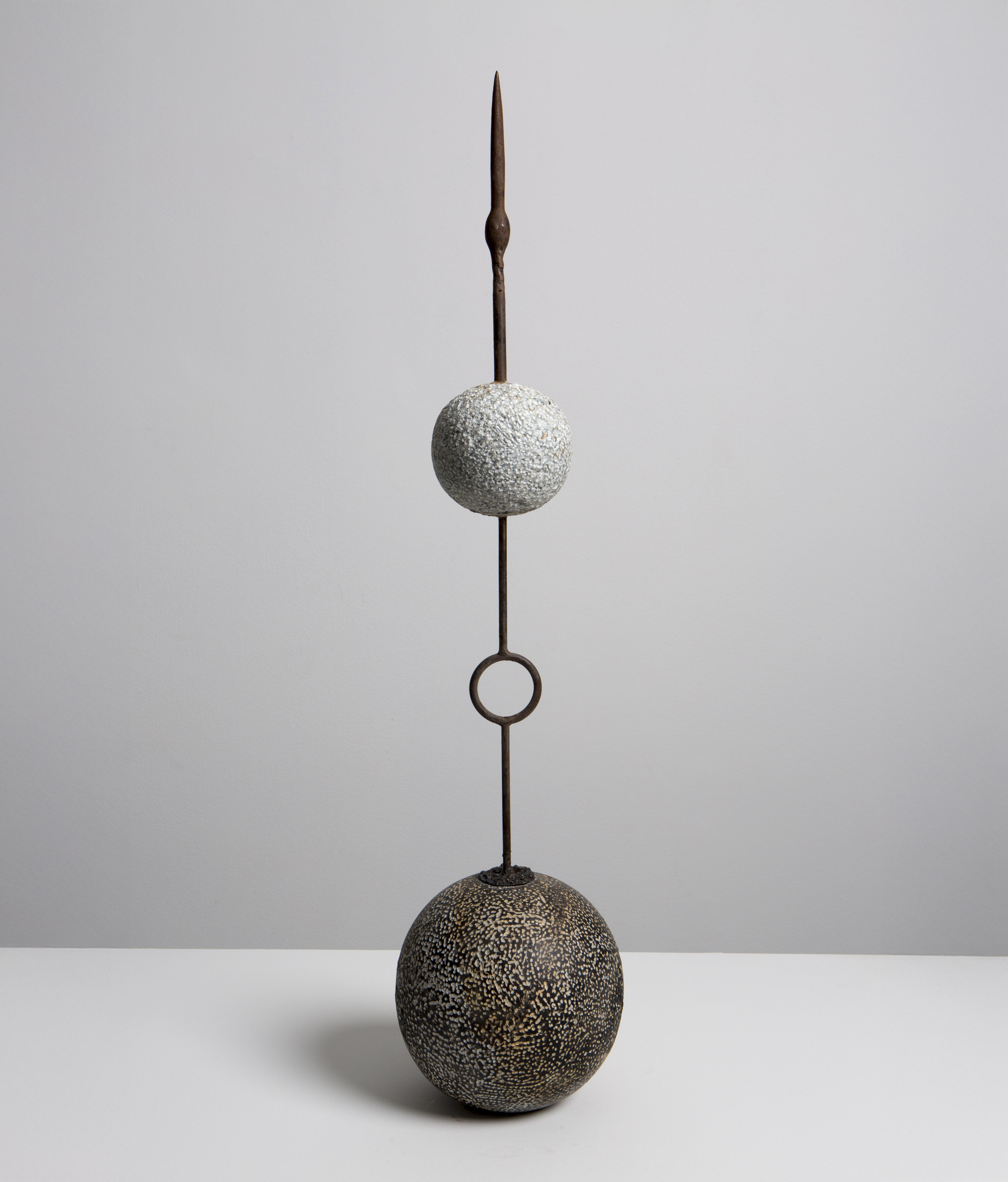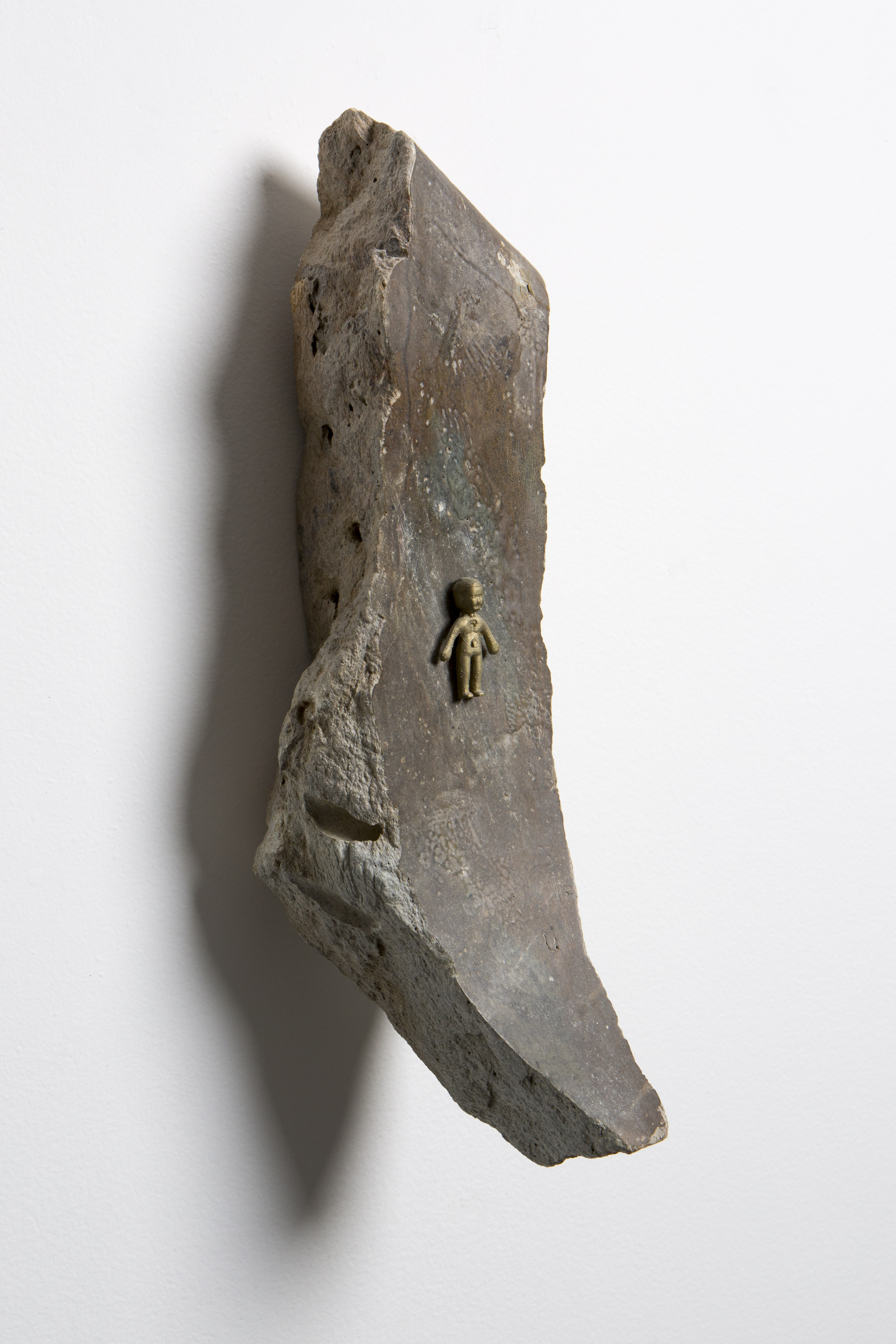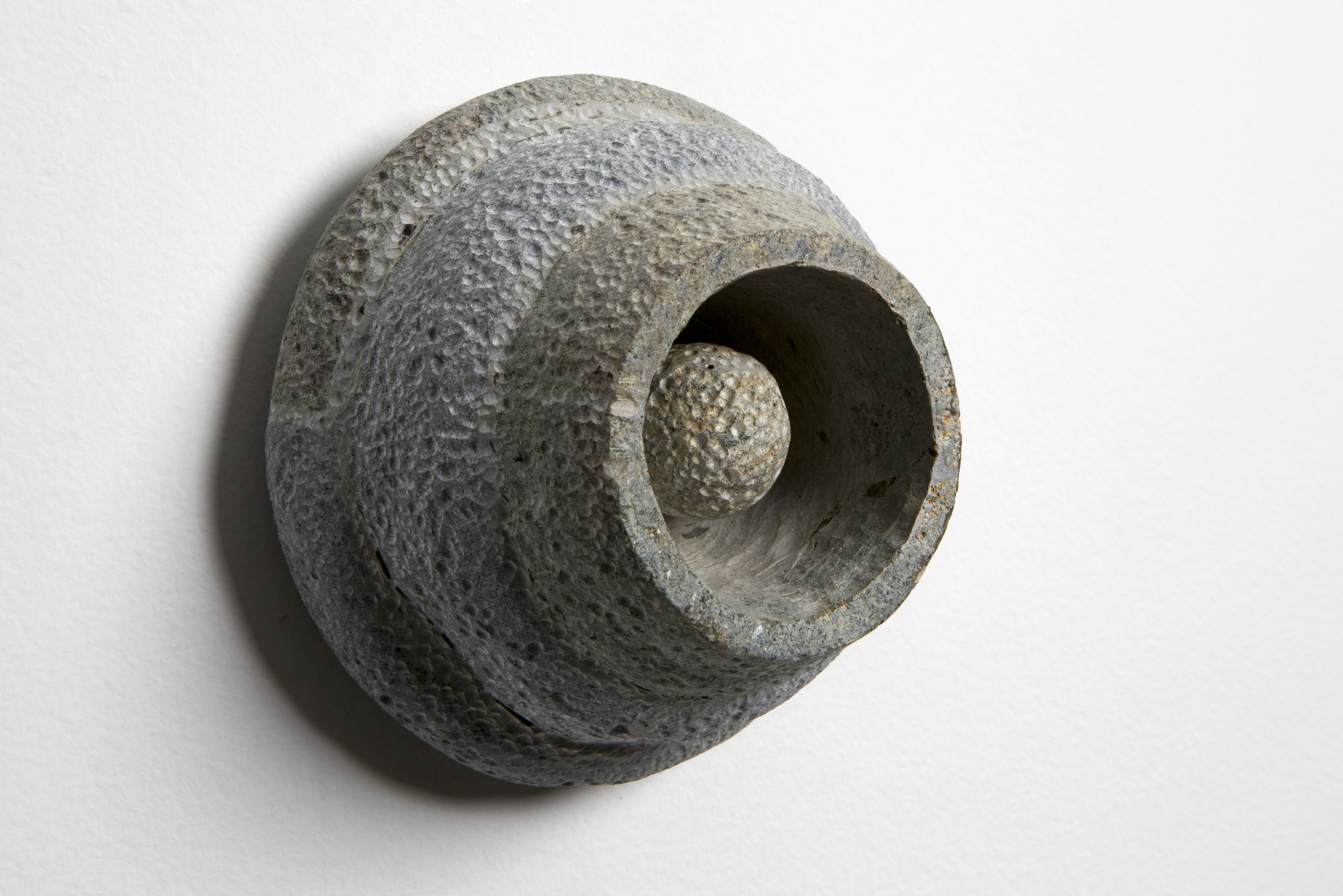 Este novo corpo de trabalho, apresentado em parte nesta exposição, é informado pelo poema Um Simples Escambista, do próprio Daniel Jorge, onde tensiona a história do escambo colonial. O que era sistema relacional baseado em códigos simbólicos e espirituais – onde se trocava vida por vida, canto por colheita, tecido por bênção – foi violentamente transformado em cifra. Os búzios, símbolo de prosperidade e comunicação com o sagrado, tornaram-se moedas que contabilizavam corpos. Em Lose Your Mother, Saidiya Hartman3 documenta a conversão obscena: meio quilo de búzios equivalia a cerca de seis quilos de carne humana. A equação do horror: pesar a vida como se pesa mercadoria. Obras como Don’t Toque e Pérola Negra Pino evocam essa violência inscrita na superfície: cada marca na pedra é memória de corte, de troca forçada, de valor extraído. Jorge trabalha na opacidade dessa ferida – suas obras não traduzem a dor em espetáculo, mas criam presenças que não se entregam por completo ao olhar, que exigem uma disposição para tatear o que resiste à transparência.