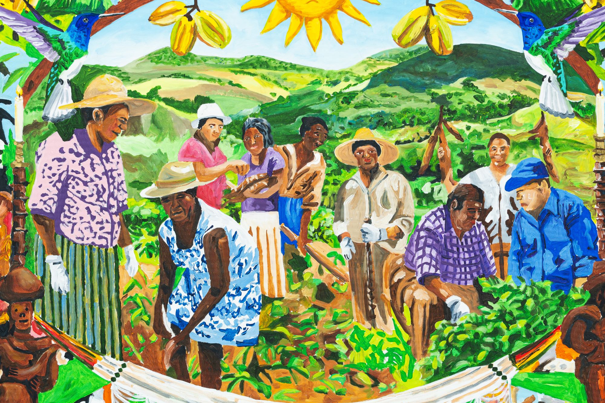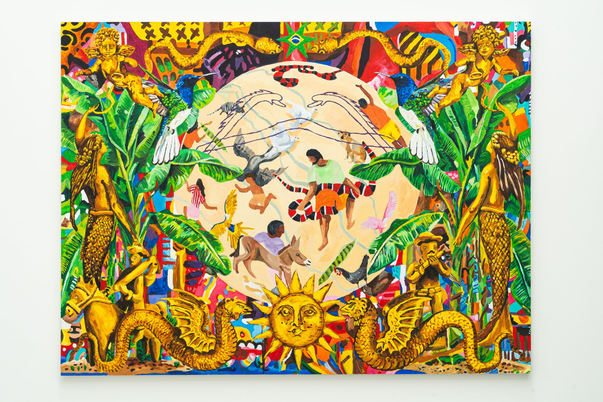 De todo modo são obras políticas; afinal, nada mais político que priorizar e demarcar a alegria, povoando o espaço com o múltiplo e o diverso, em defesa do afeto e da alegria necessária para sobreviver às adversidades. São grandes narrativas visuais, de ritmo próprio e caráter teatral, cenas que tensionam os limites da moldura barroca e mobilizam a memória coletiva. Ao organizar o mundo, essas imagens produzem imaginários e legitimam outras narrativas, funcionando como mapas em que território, corpo e memória se sobrepõem, sem que se estabeleça uma hierarquia estável entre eles.